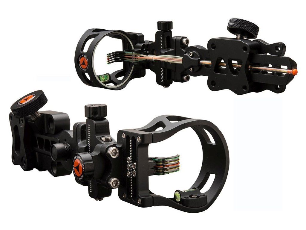 Kvalitný značkový jednopinový zameriavač APEX GEAR COVERT micro hunting sight extension čiernej farby s mikronastavením strany i výšky, odnímateľný z luku s 6´´ extension tyčou a podsvietením. Svetlo i vodováha je súčasťou.