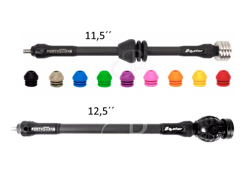 Lovecké karbónové stabilizátory FORTY SIX vhodné na lov aj 3D súťaže s gumou a závažím. Možnosť gumového dampera viacerých farebných variácií v prípade 11.5´´ stabilizátora. Vhodné aj ako bočný stabilizátor na kladkové luky.