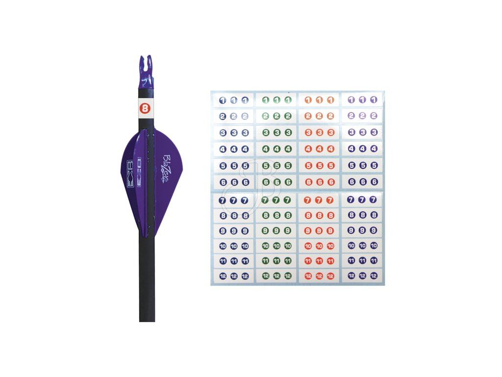 Nálepky na očíslovanie šípov Bohning wrap around arrow number v rôznych farbách pre rozoznanie jednotlivých šípov. Množstvo ako na obrázku