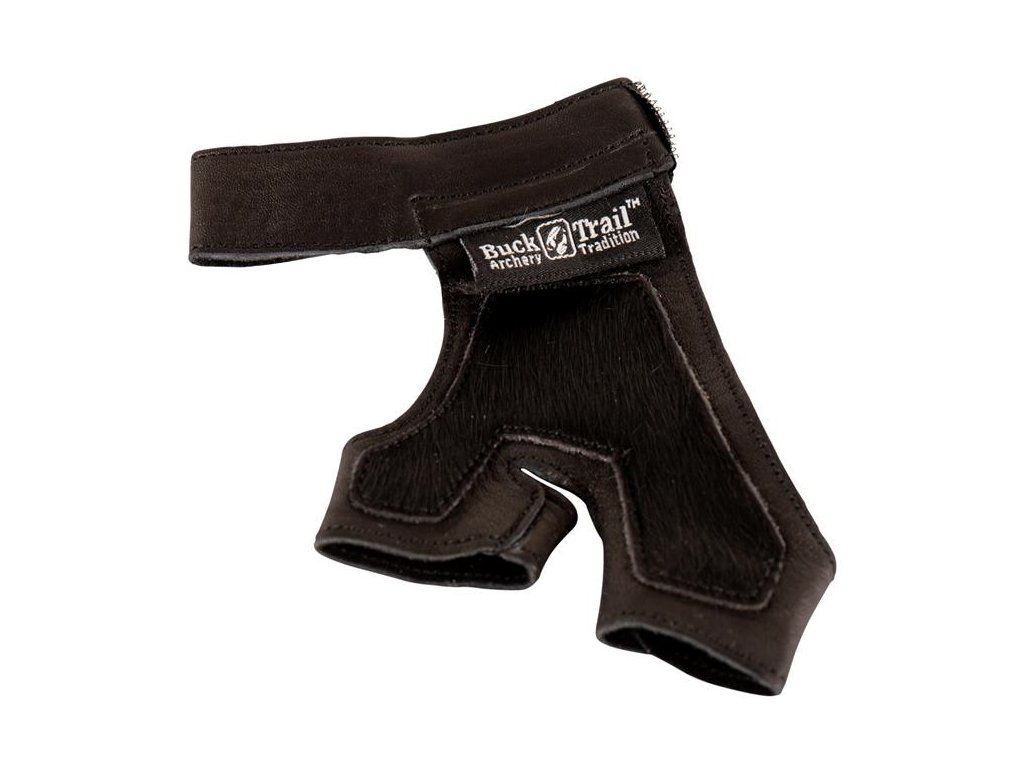 Traditional Y-shaped glove crafted from calfskin for traditional bows without cutouts, designed to retain arrow nocks from Buck trail arrows, preventing hand binding from arrow extensions.