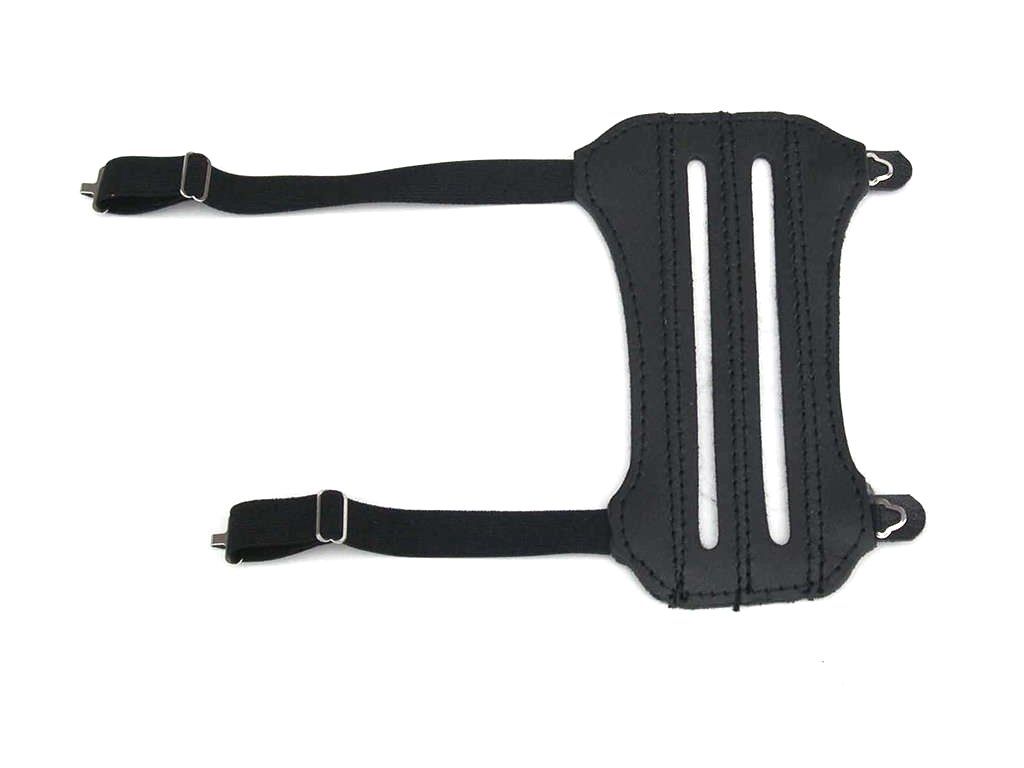 Čierny chránič na pažu Gompy Gompy AB7 z kože dobrým vetraním a kvalitnej koženky. Druhá strana je z nešmykľavého materiálu. Zapínanie je zaháknutím.