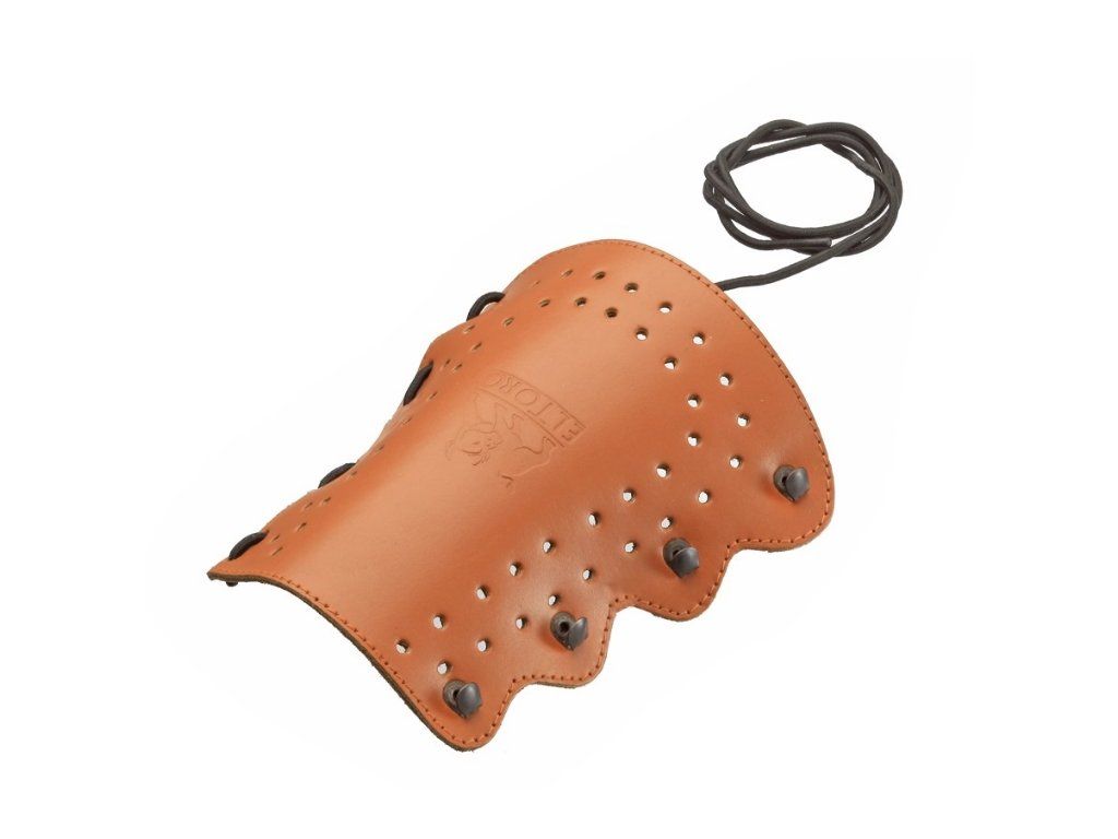 Kožený tradičný chránič na ruku svetlý s dierovaním a 4 plechovými úchytmi na zašnurovanie. šnúrka je gumená, rýcghlejšie sa upína a lepšie drží chránič na paži.