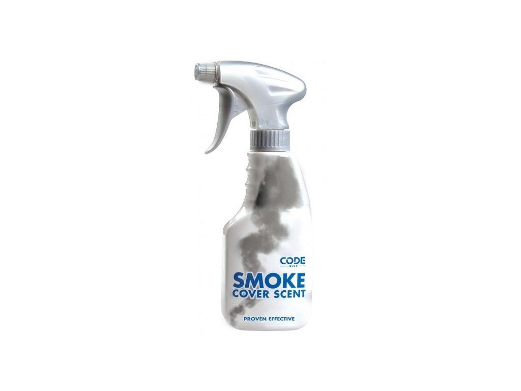 Code blue smoke absorber suitable for hunting use to conceal smoke trail on a seat and also on clothing as well as everyday domestic use to eliminate cigarette smoke.