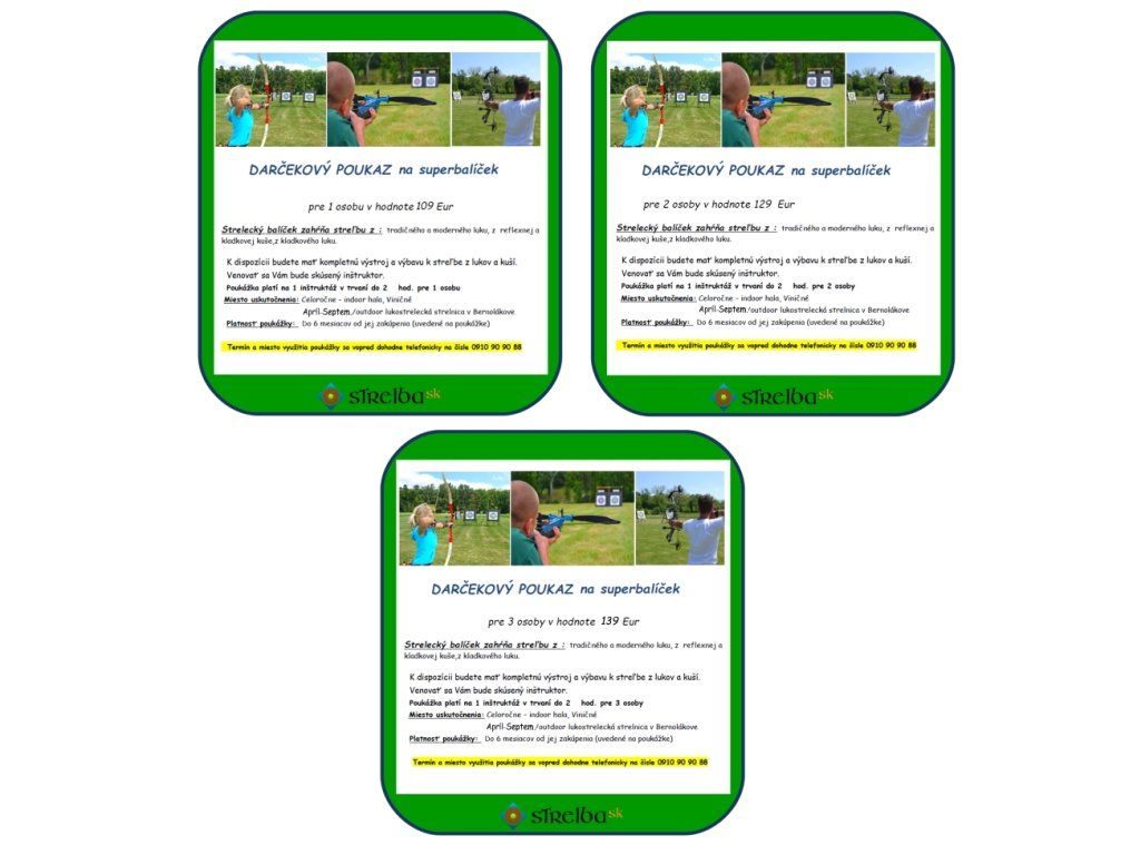 Darčekový poukaz na superbalíček 8 lukov aj 3 kuší pre 1/2/3 osoby na 2 hod.