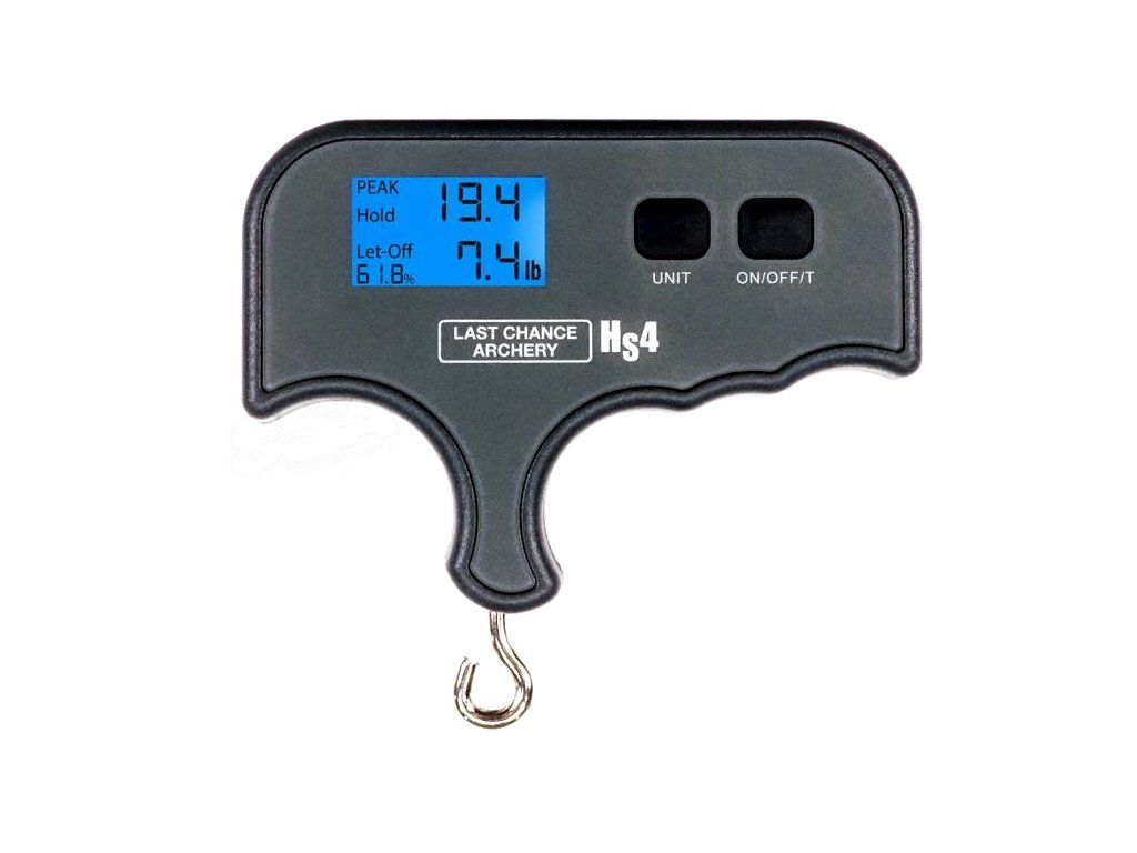 Meradlo sily luku, stačí zaháknuť a potiahnuť luk ergonomickým držadlom a Last chance HS4 odmerá záťaž v kg alebo lbs a zapamätá si najvyššiu dosiahnutú hodnotu. Jednoduchá obsluha, pamätá si najväčšiu nameranú hodnotu. Batéria CR2032. Meria až do 110 lbs.