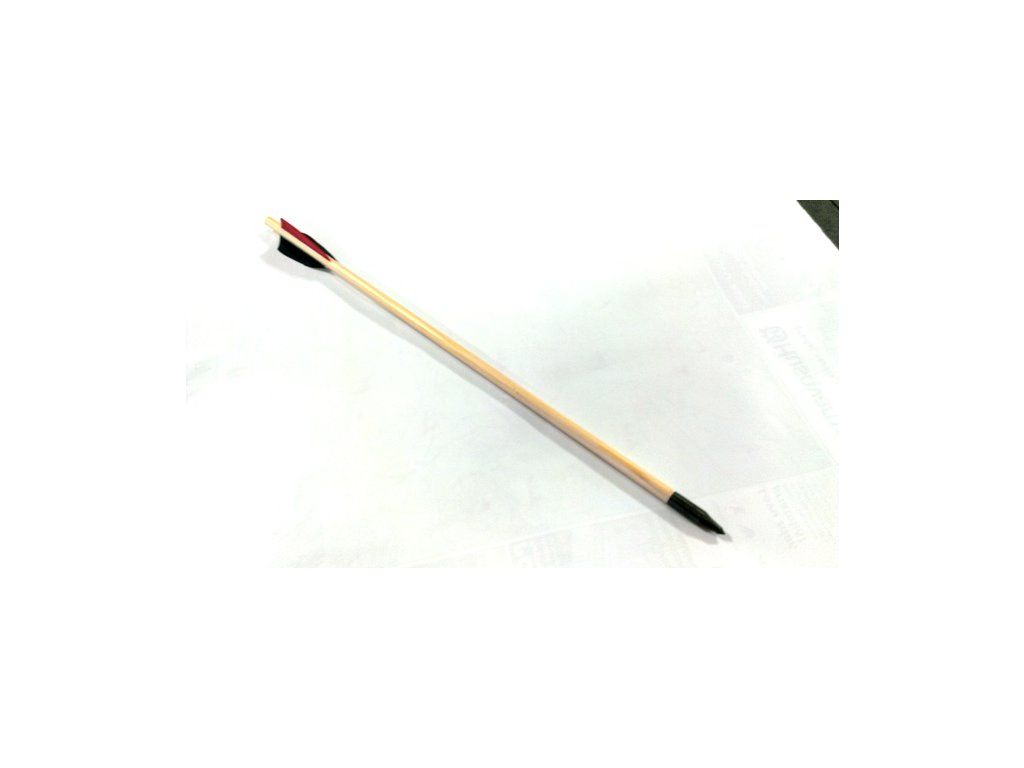 Drevený smrekový šíp s kovovým hrotom field a prírodnými 2 perami na streľbu s historickou kušou s plochým koncom. Šíp má 2 prírodné krídla 3´´ alebo 4´´. (Obrázok je len ilustračný)