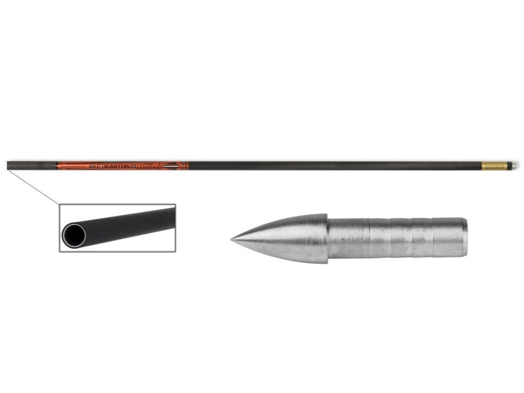 Výborný šíp na halovú streľbu a 3D lukostreľbu pre kladkové luky, karbónový šíp EASTON TRIUMPH má hliníkové jadro, dáva mu to potrebnú pevnosť a udržanie si rovnosti po dlhý čas. Súčasťou je bushing na G konček.