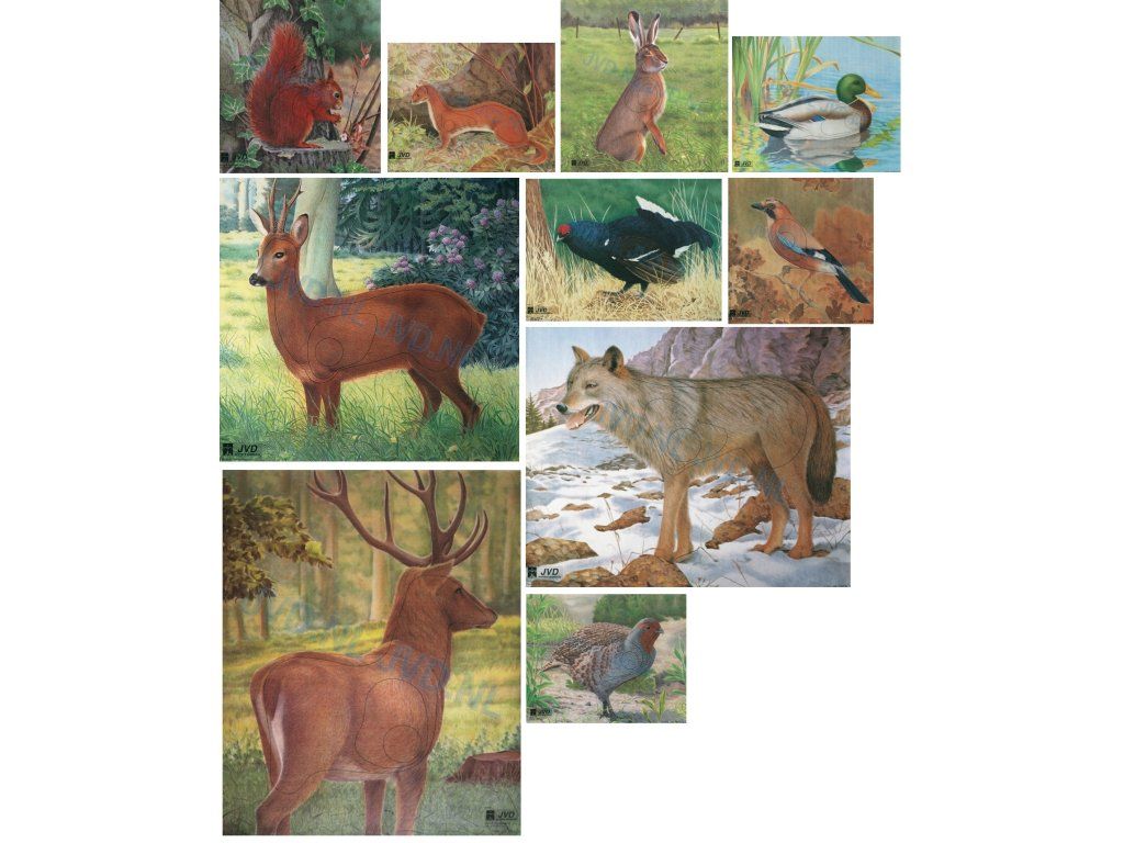Animal targets shown. On the enlarged image there are several animal 2D targets that are on a Kevlar mesh, paper stays together for a long time. Animal targets have horn dimensions.