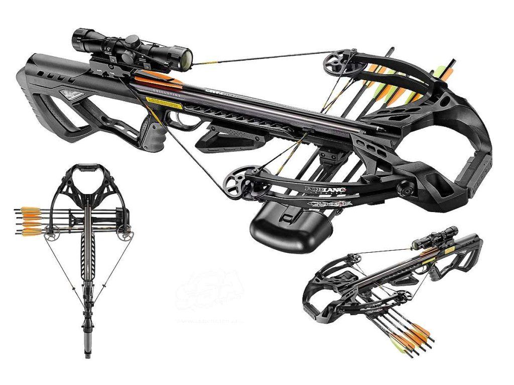 The EK POELANG Guillotine X rapid crossbow is faithful to its menu thanks to a speed of up to 400 fps with a kit featuring 3 carbon arrows, 4x32 optic, rubberized grip and trigger stop. Very accurate crossbow, the base has a quality, accuracy on 50 m is approximately 7cm grouping with arrows, the arrows are recommended 22” EASTON Bloodline, or Maximal SCORPIO 22” , suitable 100 gn core.