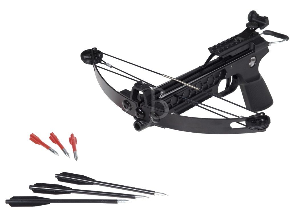 Kladková pištoľová kuša SKORPION na dlhé aj krátke šípky na rekreačnú streľbu. Presná streľba do cca 10 m v závislosti od použitých šípok (dlhšie sú presnejšie). Možnosť kúpiť náhradné káble a tetivu po zničení v cene 13,50 Eur. Kuša má telo z kompozitného plastu, lučište zo sklolaminátu.
