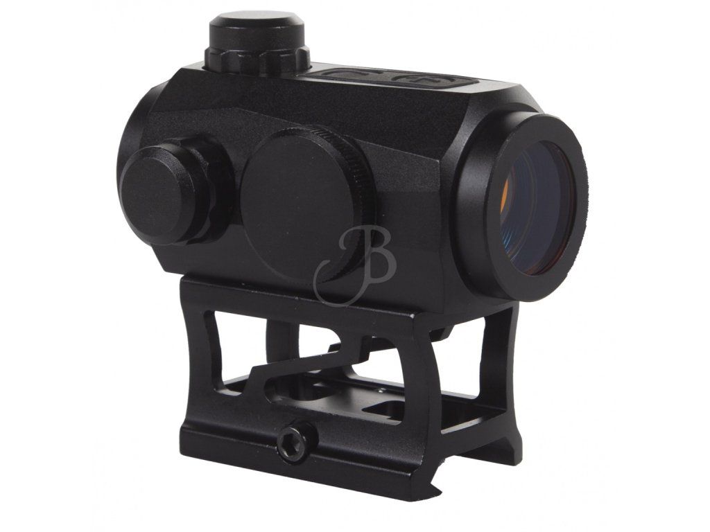 39 optics 1x22 scope on a high rail, concave with three optical caps in red color. Adjustable brightness setting. The scope is waterproof. Because it is concave, the shooter can always utilize the original classic aiming devices and thus use 2 methods of aiming.