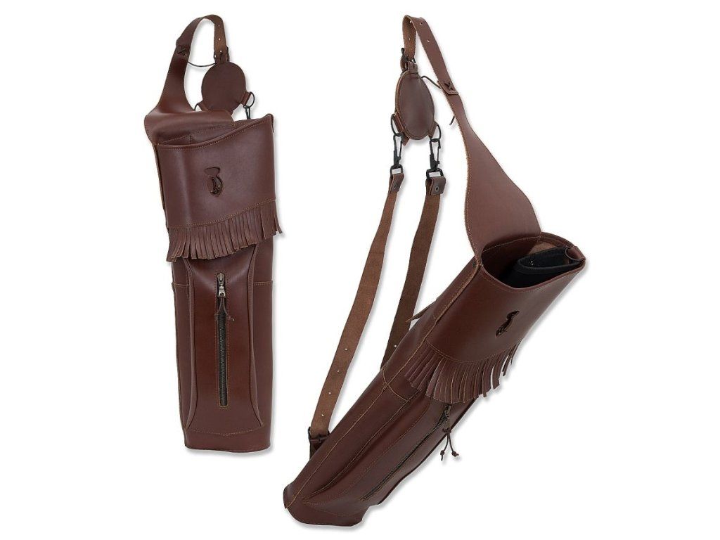 Kvalitný tradičný kožený tulec na šípy pre súťažných náročných strelcov s dvoma priehradkami na šípy a zipsovateľným vreckom. Tulec má veľké bočné vrecko a dva popruhy na dobré uchytenie a nosenie na chrbte.