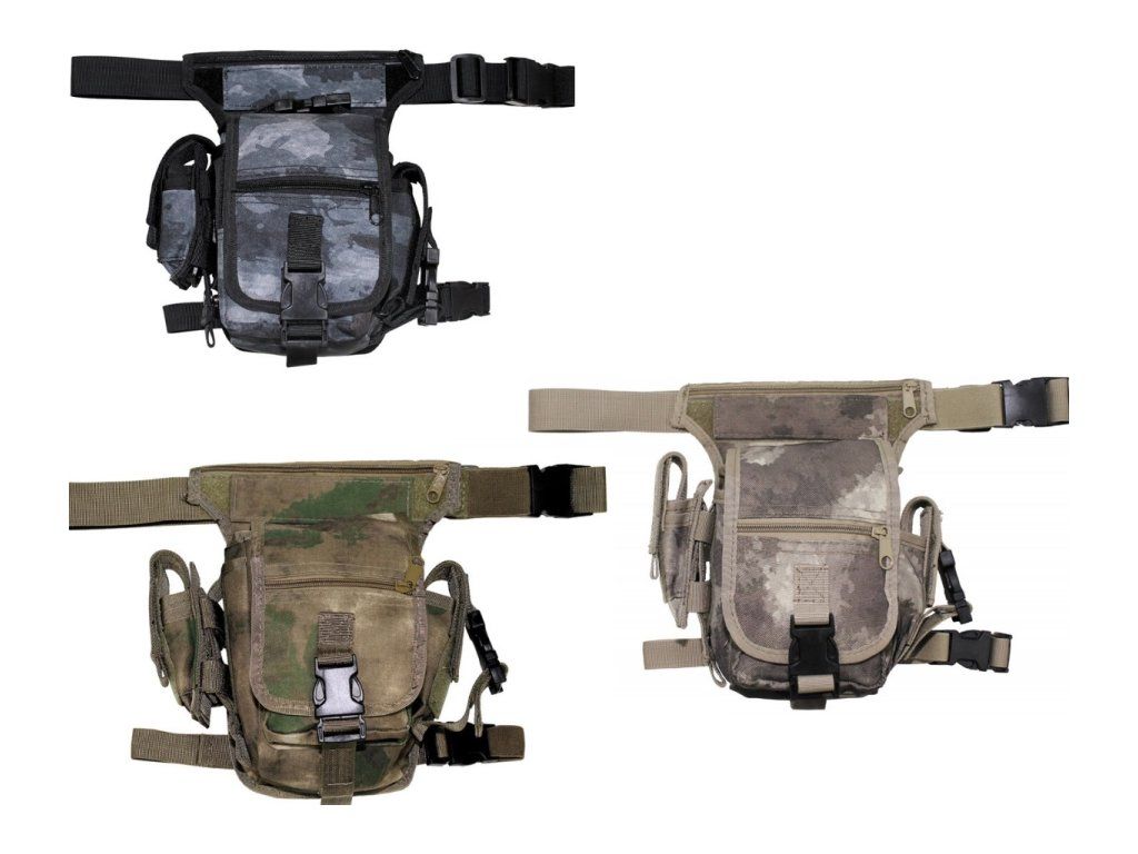 Ladvinková taška s viacerými vreckami HDT camo upevniteľná na nohe proti hompáľaniu. Má remeň aj na nosenie na pleci, ktorý sa dá prehodiť z nosenia ako ladvinky, výborná kombinovateľnosť nosenia a prehodenia popruhov. Množstvo vreciek, na zips a suchý zips, dá sa nosiť aj ako tulec na šípy.