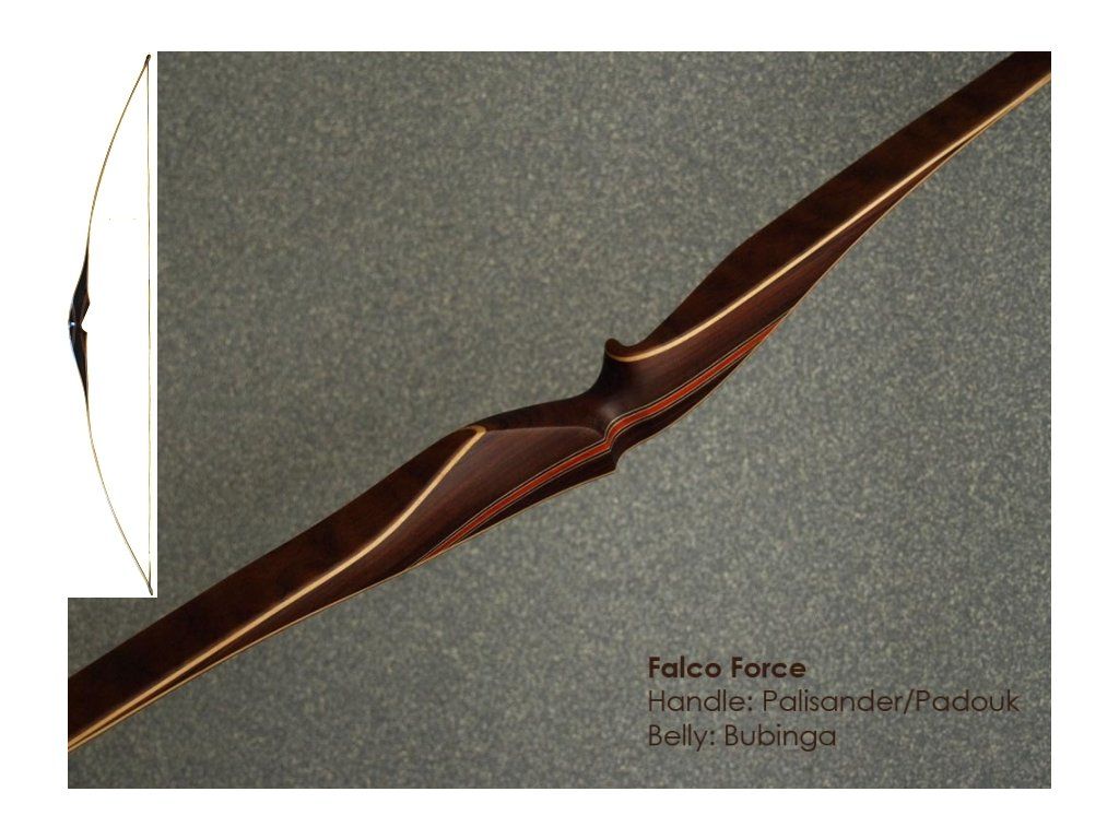 Špičkový súťažný superrýchly longbow Falco na súťažnú 3D lukostreľbu pre najnáročnejších fanúšikov tradičných lukov s jednou karbónovou vrstvou diamond carbon. longbow Falco Force z Estónska je porovnateľný s lukmi BEAR, dokonca v porovnaniach vychádza lepšie vďaka priaznivejšej cene, rýchlosťou, presnosťou je na podobnej úrovni. Vlastné skúsenosti s týmto lukom na súťažiach, luk je veľmi presný, stabilný, príjemný na náťah.