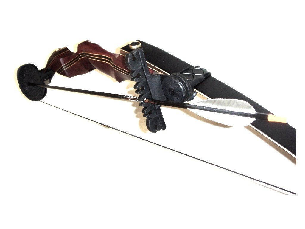 Big jednoduchá montáž loveckého držiaku dvojdielneho pomocou gumového popruhu na rôzne reflexné luky, najmä tie, ktoré nemajú šróby na uchytenie držiakov.