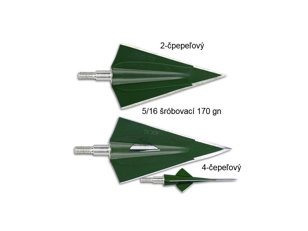 Lovecký ťažký šróbovací hrot zwickey delta na pevné uchytenie do vložky/insertu šípu určený na lov veľkej zveri vhodný do šípov na kuše. Ich výhodou je jednoduchosť a možnosť opätovného naostrenia po použití, je to tvrdý plech.