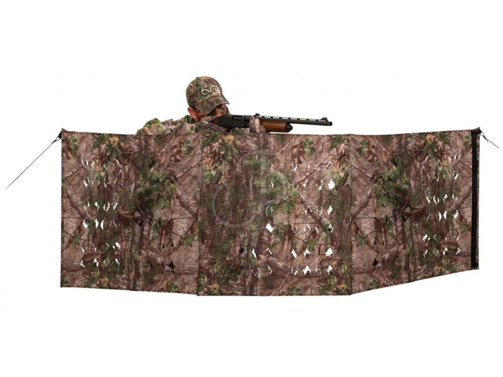 Maskáčová stena na lov zveri, 3 sekcie, ľahko skladateľný a prenosný s 3D listovým efektom. Maskovacia sieť určená na lov lukom kdekoľvek v teréne. Maskáčový kryt sa zmestí do ruksaku, zložený má veľkosť asi dáždnika. Táto rýchlorozkladacia polovnícka sieť je lovecká záštita a maskovacia sieť na lov lukom alebo inou zbraňou.