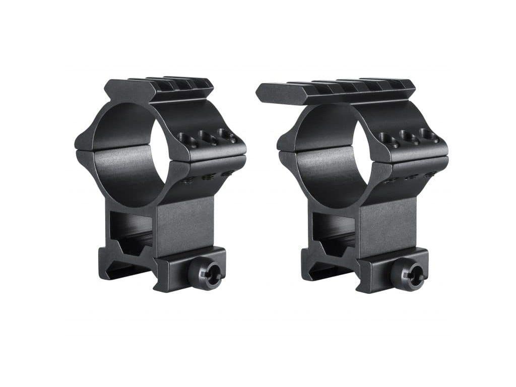 Profesionálne objímky HAWKE s piccantiny/weaver top rail, lištami priamo na objímkach na osadenie doplnkového príslušenstva (laser, diaľkomer, svetlo, vodováha atď). Vhodné na kušu aj pušku.