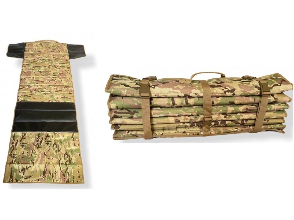 Nastreľovacia podložka na streľbu v ľahu dobre polstrovaná pre lepší komfort strelca s rozšíreniami pre ruky, ktorú poľahky poskladáte a rozloťíte.