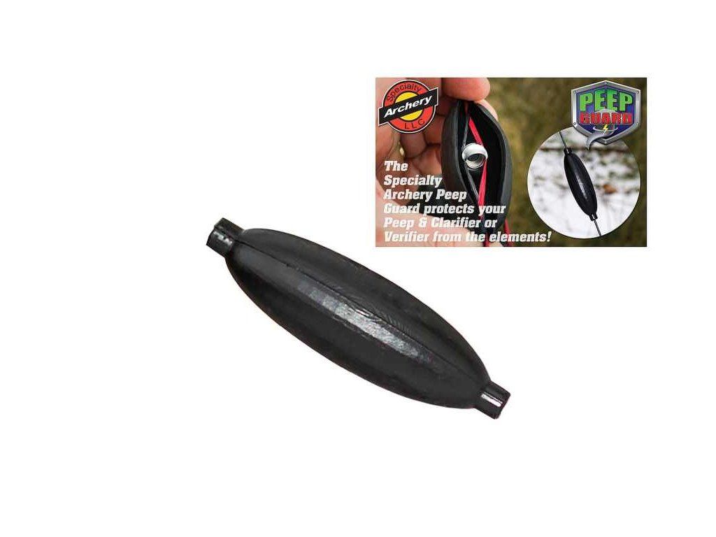 Specialty archery peep guard je gumový zatvárací obal na ochranu peep a tetivy, ktorá ho obopína pri prevoze a prenášaní a chráni tak peep, tetivu aj pred odermi a vlhkosťou.