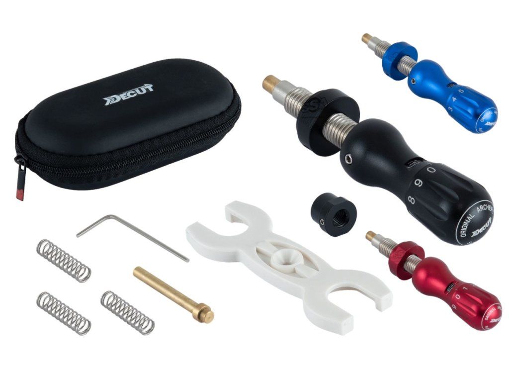 Mikrometricky nastaviteľná opierka DECUT JANUS s jemným odpružením určená pre súťažné luky. Má vlastnú mierku podľa ktorej je jednoduchšie merať posun a silu odpruženia. Dobrý klikací mechanizmus, ktorý drží polohu, opieracia planžeta je mosadzná. Treba ju však pravidelne kontrolovať, najmä uchytávacie šróby. Súčasťou sú náhradné pružiny, náhradná opieracia planžeta, kľúč, púzdro a nadstavovací adaptér pre tenšie madlá.