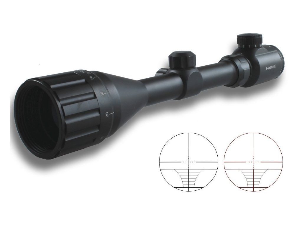 Optický približovací zameriavač s ilumináciou kríža a s variabilným zväčšením 3-9 x a veľkým 50 mm objektívom pre lepšiu svetelnosť v horších svetelných podmienkach, ideálne riešenie pre kuše.