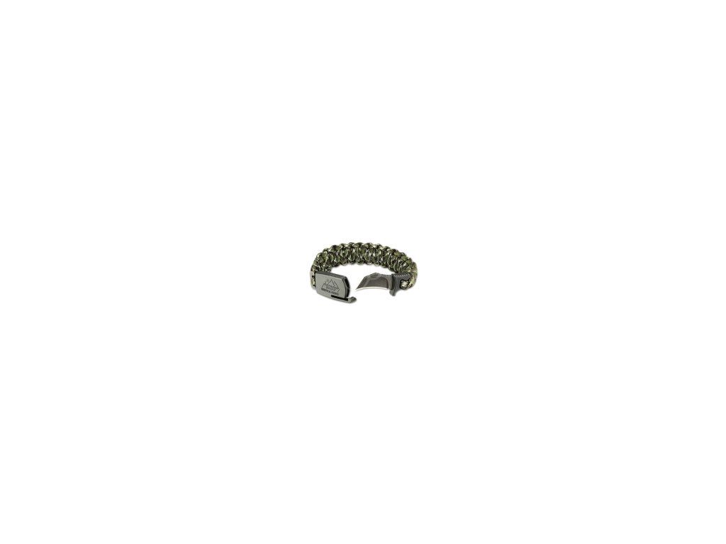 Paracord remienok s nožom Boeker paraclaw woodland náramok na prežitie camo farby. Outdoor survival paracord Boeker paraclaw.