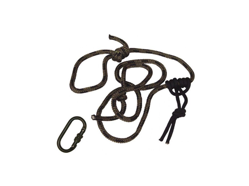 Pevné bezpečnostné lano s karabínami na upevnenie vestyk stromovému posedu. Dve rýchlospojky na každú stranu.
