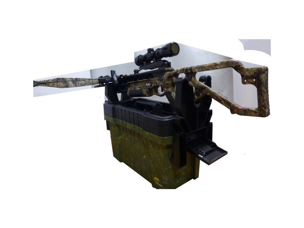 Plastové praktické púzdro Plano na rôzne príslušenstvo strelcov a zároveň po vyklopení bokov je z neho možné spraviť nastreľovaciu stolicu na kušu alebo pušku. Plano gun shooter