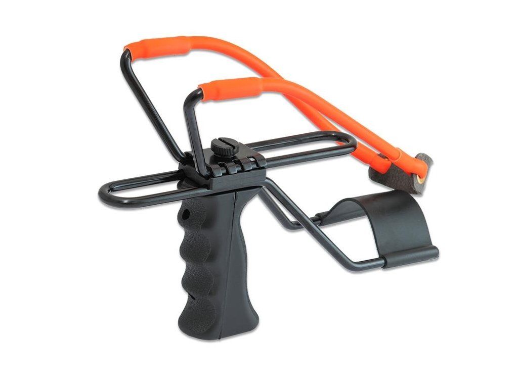 Prak PISTOL Maximal slingshot s nastaviteľnou dĺžkou natiahnutia pre rôzne dlhé ruky a so sklopnou opierkou na lepšie zapretie o ruku. Guma je vymeniteľná v cene 4,90 eur. Odporúčame 8 mm guľočky.