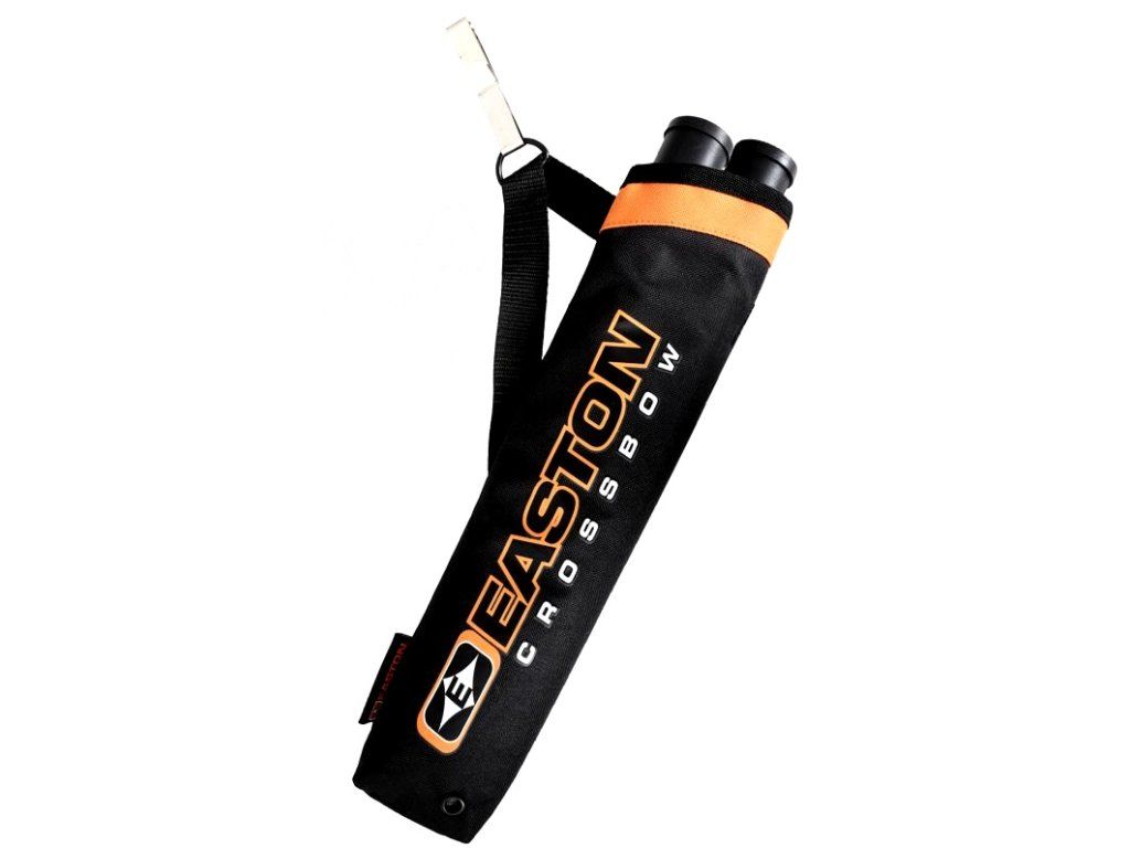 Black EASTON FLIPSIDE quiver for quick release and draw of vanes during sport shooting as well as storage with two plastic tubes, fits approximately 8 vanes into a bow. It is designed for sport tips, not hunting tips. It is designed for sport tips, not hunting tips. Suitable for 20 and 22” vanes, not suitable for 14/16/18” vanes, it is too short for these lengths.