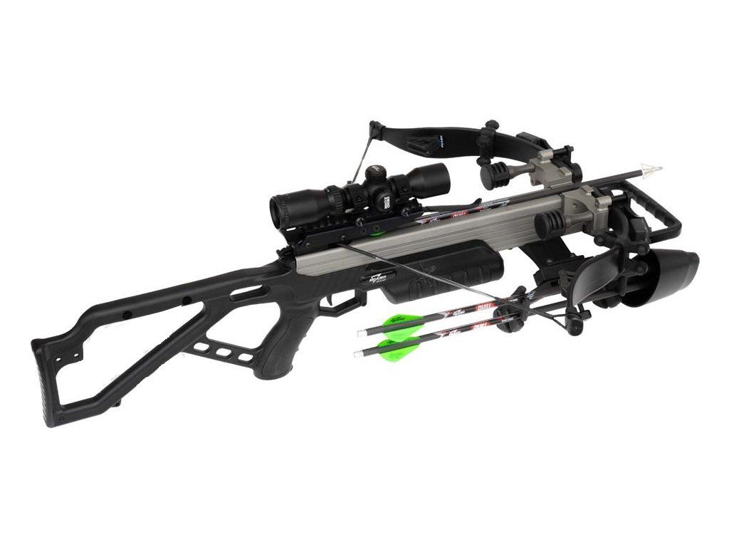 Lovecká kuša na menšiu a strednú zver a lov do cca 30-40 metrov, terčový dostrel cca do 65m. Excalibur MAG 340 fps je malá, ľahká a kompaktná a ekonomická, pritom so zárukou kvality, výdrže a výborného dizajnu od EXCALIBUR. Kuša vhodná pre strelcov aj s menšou postavou a dĺžkou paží, je možné neskôr predĺžiť pažbu pomocou excalibur x-tendera botky. Vo výbave je multikrížová podsvietená optika tact-100 scope s 1´´ objímkami, držiak na šípy, 3 karbonové šípy Quill 16,5 s končekmi rhino nock, pomocný napínač tetivy (cocking aid), systém proti výstrelu naprázdno a plus šetriace gumové tlmiče priamo na ramenách aj v tetive. Naťahovanie len pomocou priloženého napínača zvládne takmer každý dospelý chlap. Je možné k nej obstarať aj kľukový napínač excalibur crank EXT charger (cca 299 Eur).