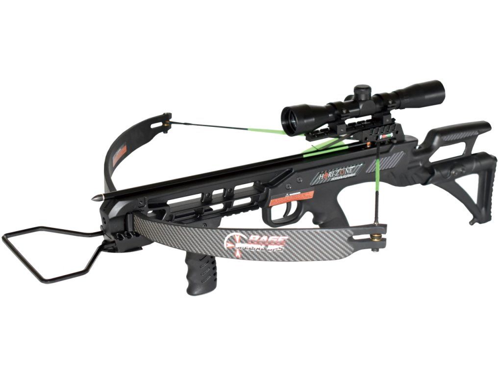 Reflexná kuša HORI-ZONE special ops vhodná na hobby streľbu s výborným systémom uchytenia tetivy, ktorá sa neničí v tetivových okách s optikou 4x32 s možnosťou posúvať vzadu pažbu aj predné držadlo, systém proti výstrelu naprázdno, automatická poistka, lubrikant na koľajnicu. Efektívny dostrel je cca 20-35 metrov.