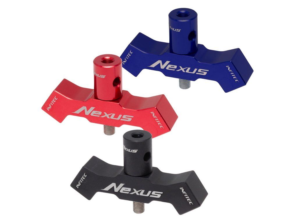 Rozbočka Infitec Nexus V-bar na olympijský luk. Jednoduché doťahovanie a uvoľnenie. Uhol rozbočenia 40°, bez sklonu bočných stabilizátorov.
