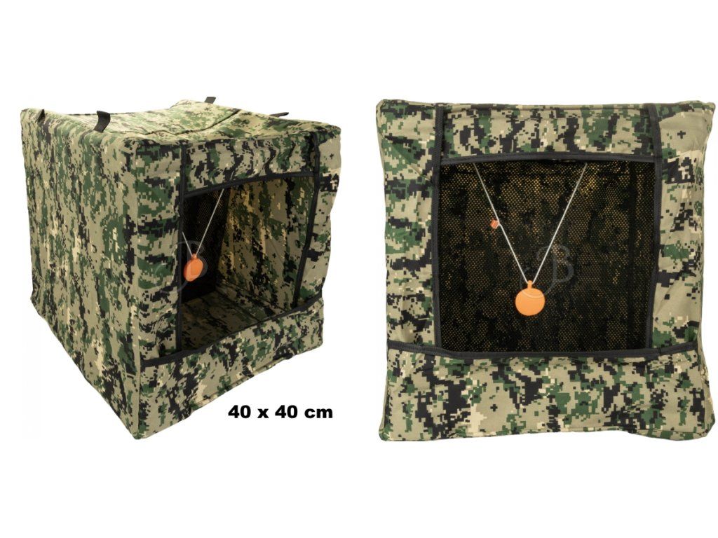 Sieť na zachytávanie guľôčok do praku Blackbird box, s ktorým sa dá trénovať streľba z praku a zároveň opakovane využívať muníca.V strede je terčík, lapač guľôčok zachytí aj rýchle praky.Vhodné pre oceľové guľôčky, sklené guľočky aj hlinené guľôčky do praku.