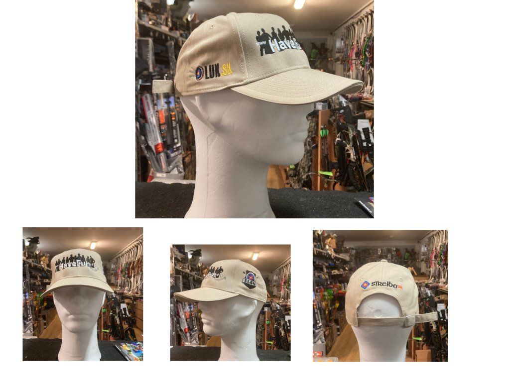 Šiltovka Have Fun, which has a archery shop LUK.sk / HAVE FUN in a brighter color in a limited edition of only 50 pcs with embroidery. The front is with the HAVE FUN.sk logo. The side is with the ELÁN club, the other side is LUK.sk, the back is with streba.sk (club website and courses, archery bows).