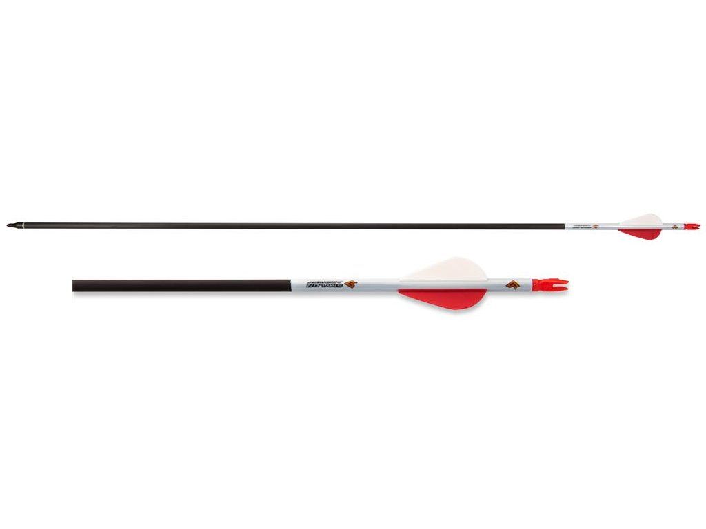 Šíp do kladkových lukov SKYLON Fast WING 400-450 spin kompletný štandardný rozmer s plastovými letkami 2´´ a šróbovacím hrotom v dĺžke 30´´ s bielou nálepkou na lepšie dohľadanie. Letky sú bielo červené. Šíp vhodný na terčovú streľbu.