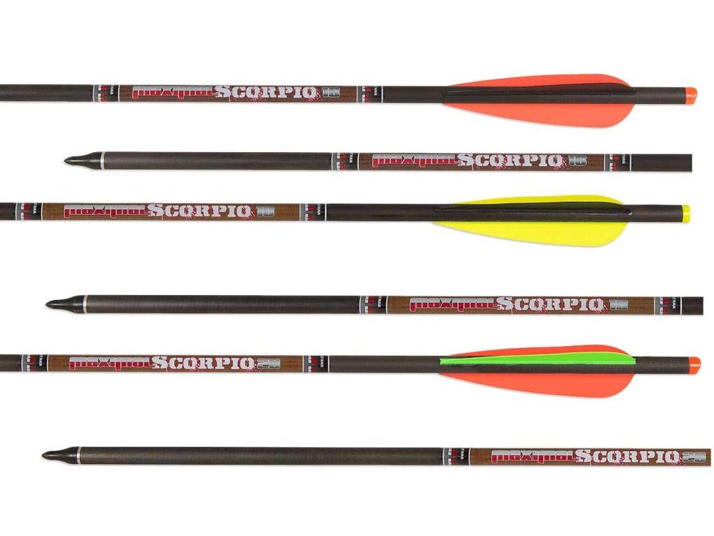 Kompletný kvalitný karbónový šíp MAXIMAL SCORPIO so 4´´ plastovými letkami, zárezovým končekom a vložkou a hrotom 100 gn v dvoch veľkostiach: 16 / 18 palcov. alternatíva k drahým značkám šípov do kuše. Šípy sú presné, môžu sa používať aj na lov do 420 fps. Lacná a dobrá náhrada pre excalibur Diablo 18´´. Dlhodobo dobrá skpúsenosť, šípy sú veľmi odolné a vhodné aj na zodpovedný lov.