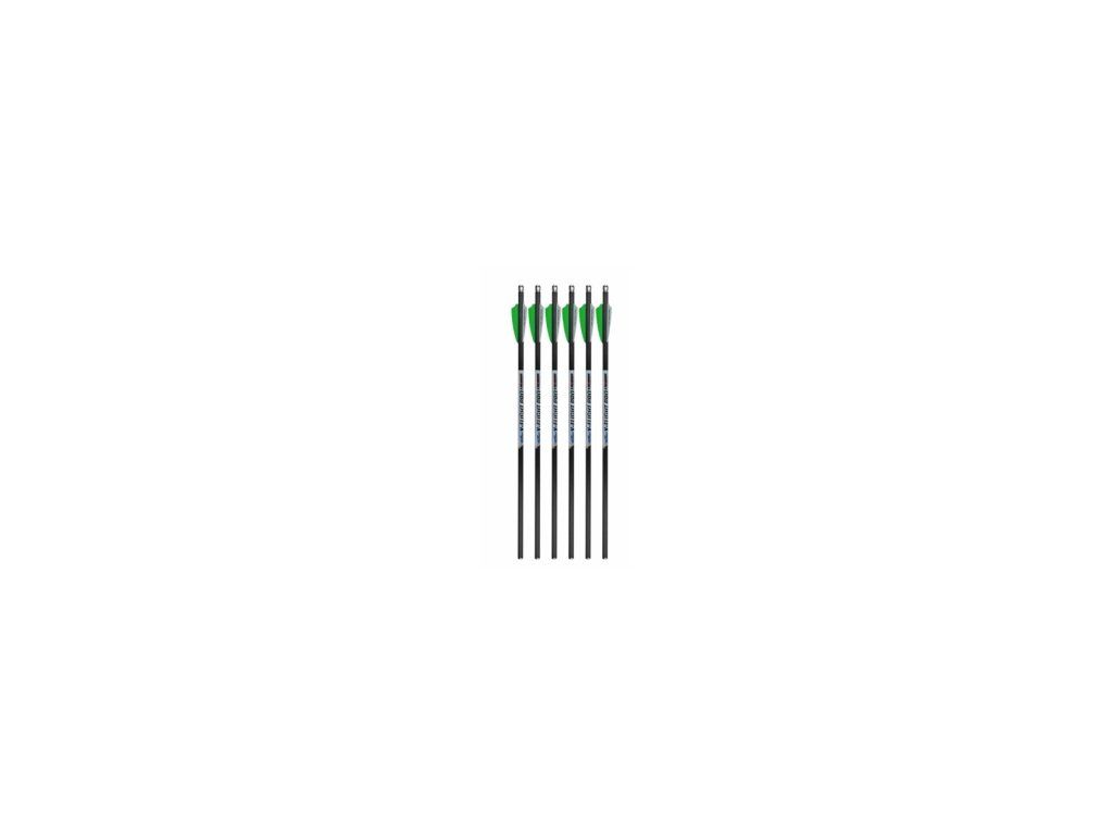 Šípy Excalibur V-flight do kuše Excalibur HYBRID X v počte 6 ks v balení. Šípy sú bez hrotov (od 0,50 Eur), s plastovými letkami a končekom a hliníkovým končekom excalibur rhino nock.