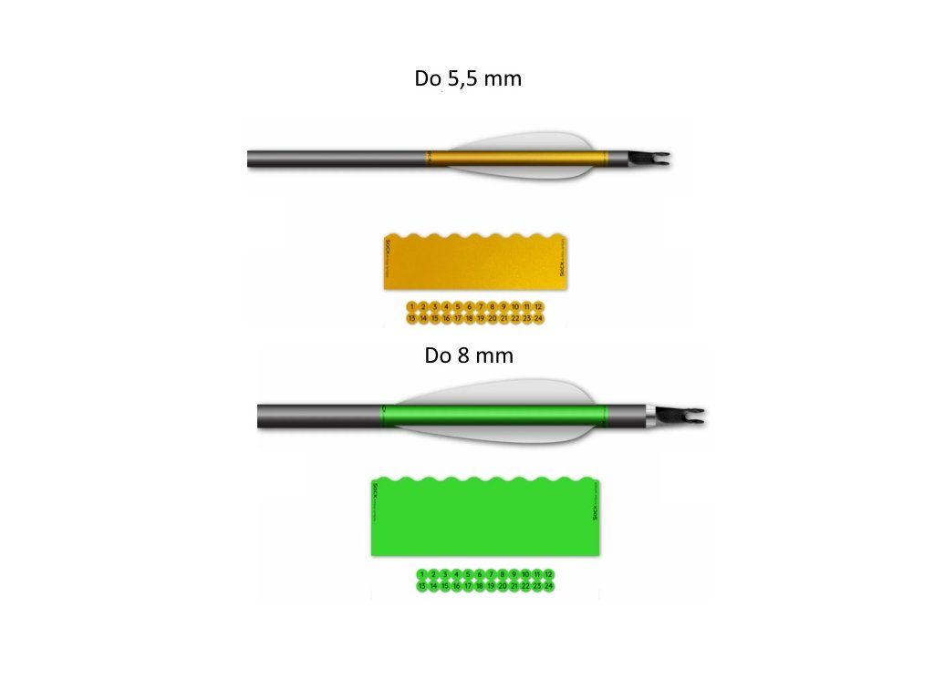 Nálepka na šíp (arrow wrap) SOCX Short v rôznych farbách a na rôzne šírky šípov do priemerov šípov 5,5/ 8 . Dobrá samolepiaca fólia / wrap aj na šípy X10. Set obsauje 12 nálepiek. Existujú aj špeciálne s predznačenými čiarami na letky spin wings.