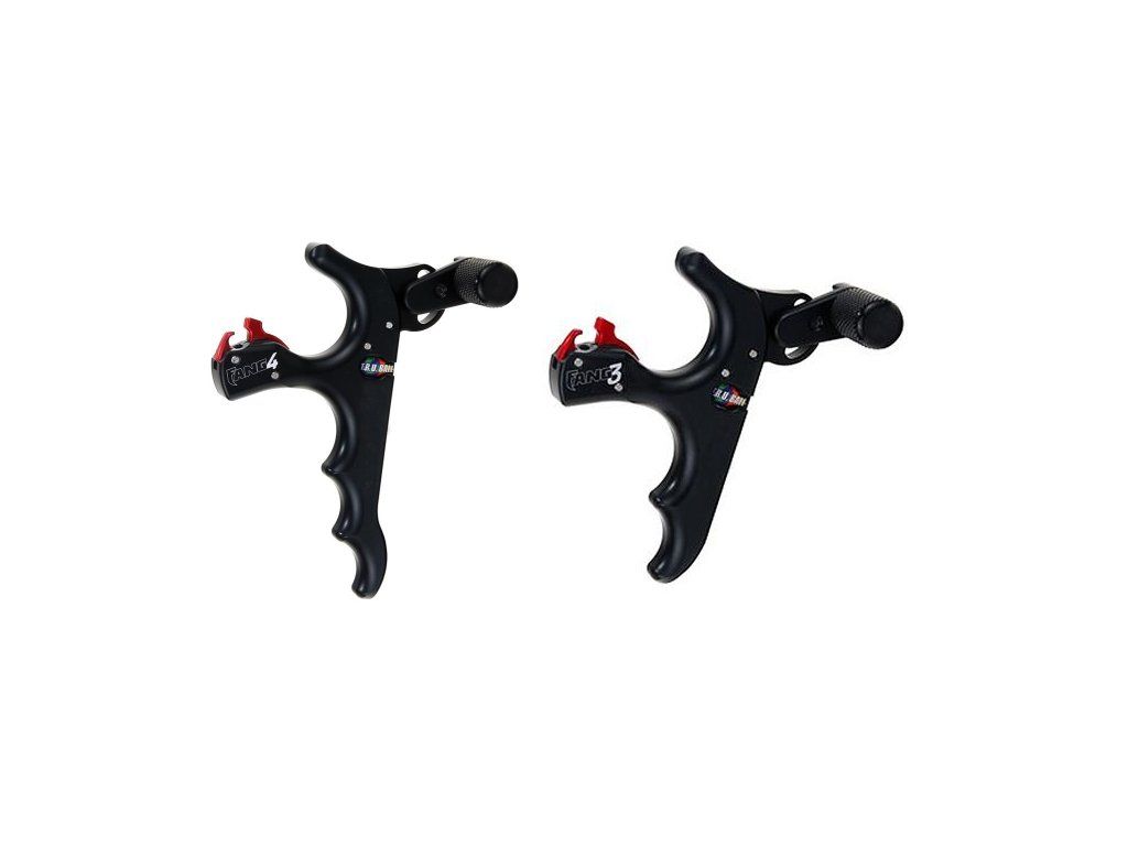 A thumb release device with 4 fingers from the well-known superbrand T.R.U. BALL Fang 4 thumb release is used for serious competition shooting as well as hunting and recreational use. It is black in color. There is also a TRUBALL Fang 3 mini version with 3 fingers. The position of the thumb can be adjusted.
