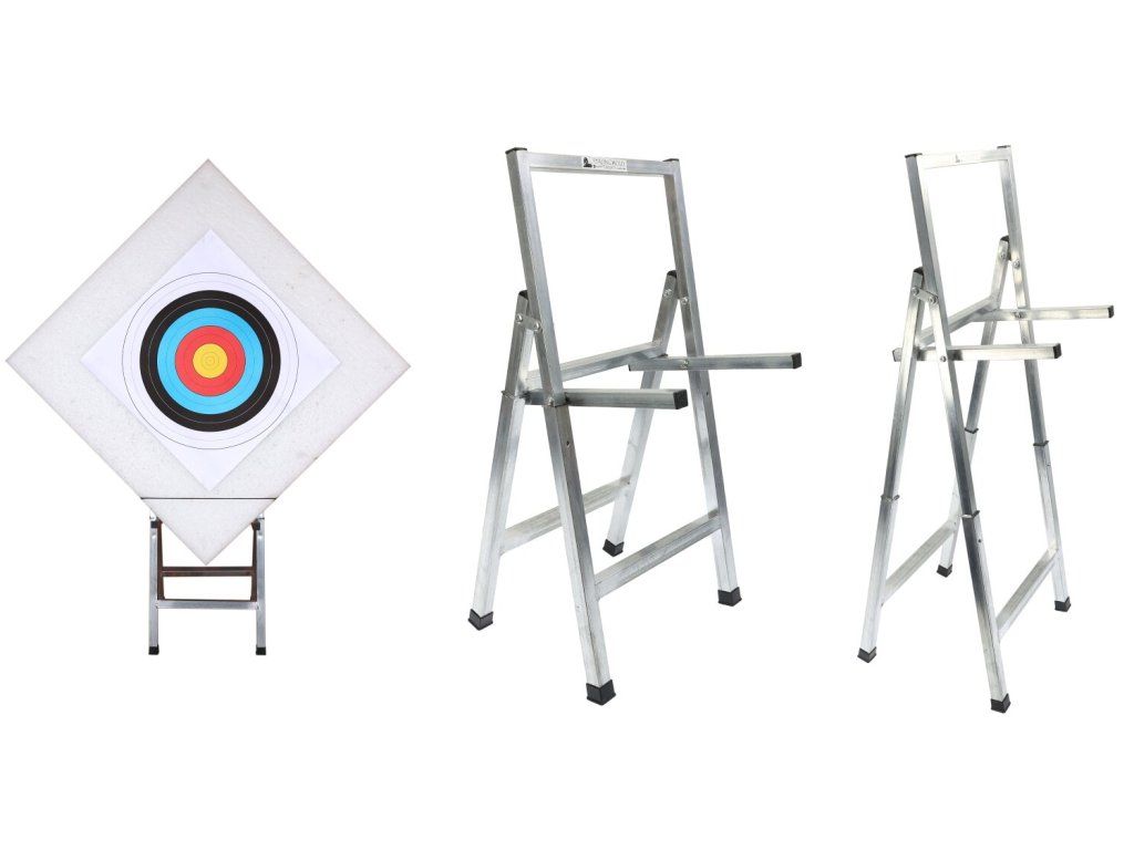 Kvalitný oceľový stojan na terčovnice, prípadne aj ťažšie slamené terče. Minimálna veľkosť terča je 50 cm priemer, max 80 cm. Stojan je oceľový a je veľmi pevný. Možnosť dať terčovnicu kruhovú aj kváder vodorovne aj na do kosoštvorca. Možnosť nastaviť výškovo.