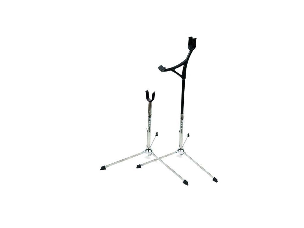 A sturdy and stable WinaWin Bow Stand Folding Ty High-Low, which in its long unfolded state assumes a long stabilizer for leaning and after removing the upper part can be used for any bows.