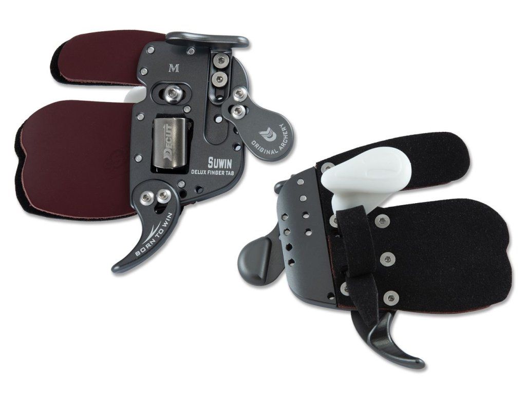Nový chránič DECUT SUWIN Delux na prsty s doplkami, aké mávajú oveľa drahšie tabky, uloženie malíčka, podporu klenby dlane, vymedzovač prstov, opierku pod bradu v kovovom ráme. Materiál je koža. Výborná tabka aj na súťaženie, ktorej nič nechýba pre presnú streľbu.