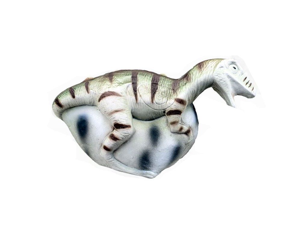 Terč malého baby dinodaura 3D od Eleven stojaceho na vajíčku, mäkší materiál z ktorého sa dobre vyťahujú šípy. Vhodný na tradičné luky a rekreačné luky do 50 lbs.