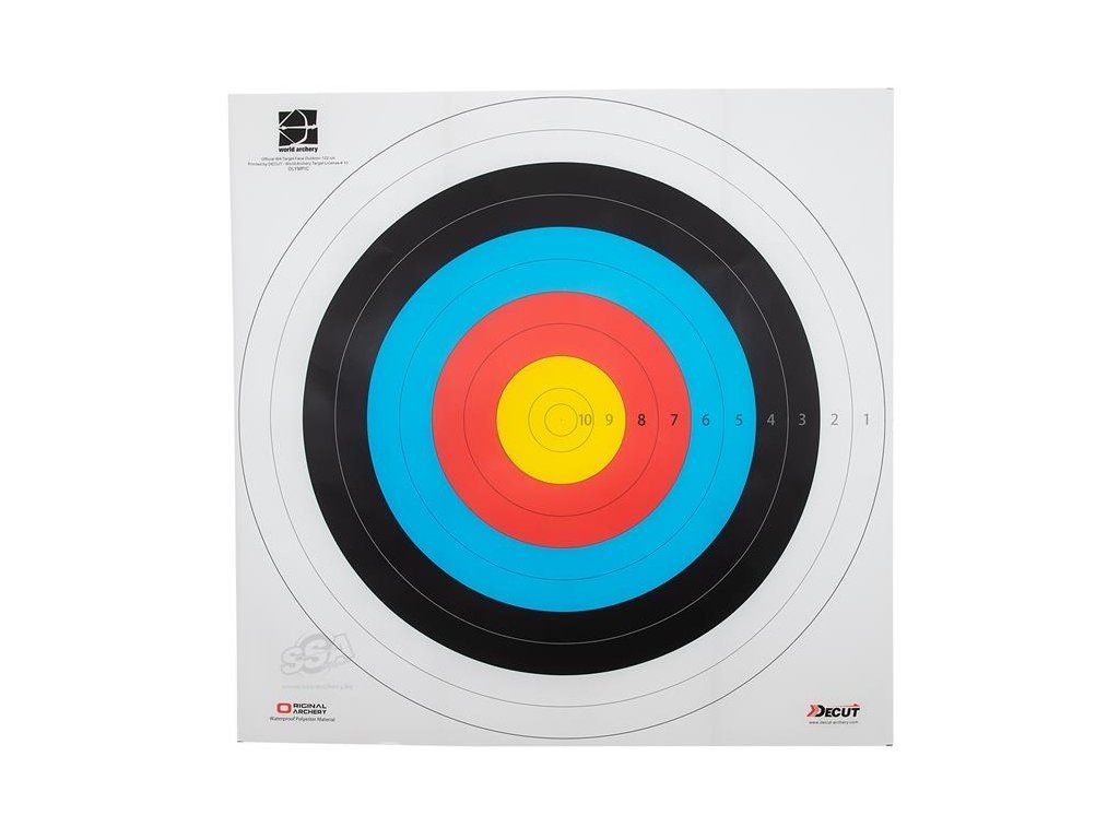 Oficiálny súťažný terč na 70 a 90 m pre olympijské luky muži a kladkové luky, alebo na 40/50 m pre kategóriu barebow, alebo pre starších žiakov na 50 a 40 metrov a kadetov olympijský luk na 60 metrov. Kvalitný spevnený podšívaný a dobre trvácny papierový terč určený na tréning alebo súťaže vodeodolný, možnosť opakovaného použitia a ponechania vonku aj na daždi.