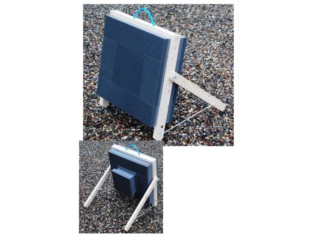 Kompaktná kvalitná a trvácna prenosná terčovnica pre všetky typy lukov a kuší so stojanom a spevneným hlbším a výmenným stredom.