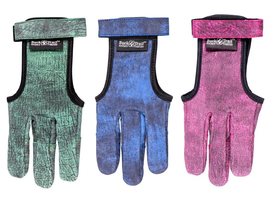 Tradičná rukavica Buck Trail MUI kože na tradičnú lukostreľbu v troch netradičných farbách vhodná na tradičné luky.