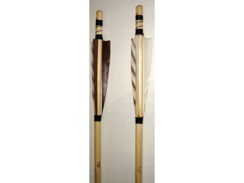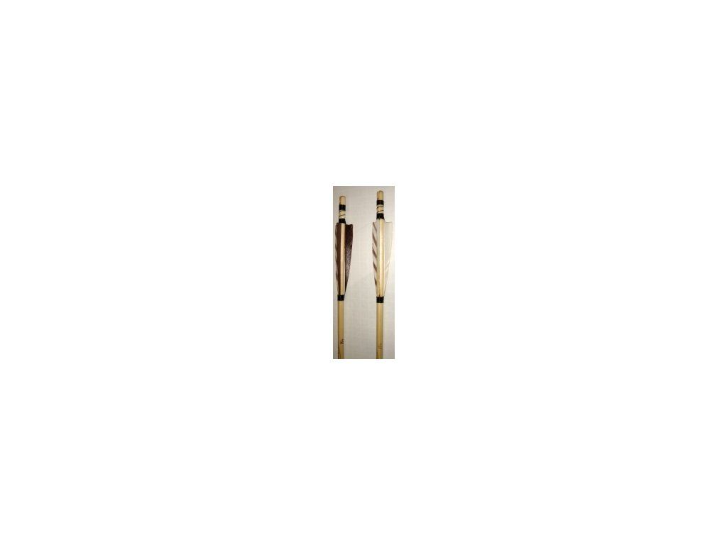 Tradičné šípy zo smreku s tradičným zárezovým končekom SZALOKY. Urené pre luky 40-45 lbs. Letky sú prskané 4´´ barred a niťou spevňované, hrot mosazdný field tvar.