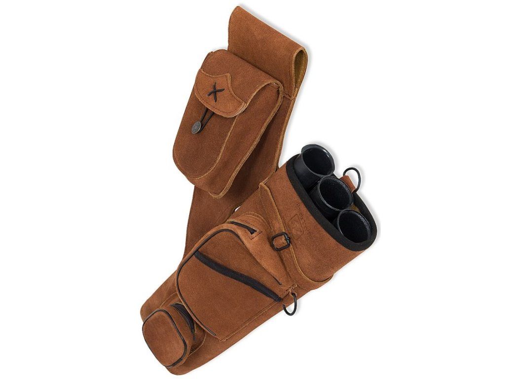 Kvalitný značkový tulec od Big Tradition na bok s tromi bočnými vreckami pre tých, ktorí fandia koženým doplnkom pre lukostrelcov. Na šípy sú aj priehradky. Opasok nie je súčasťou